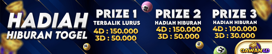 - Hadiah prize 2 : 4D = Rp. 150.000,- / 3D = Rp. 50.000,-